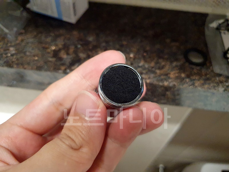 끝으로 스테인레스 필터를 끼워준다. (손톱이 왜이리 길지?)