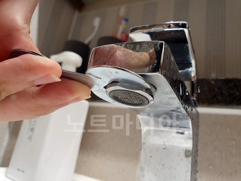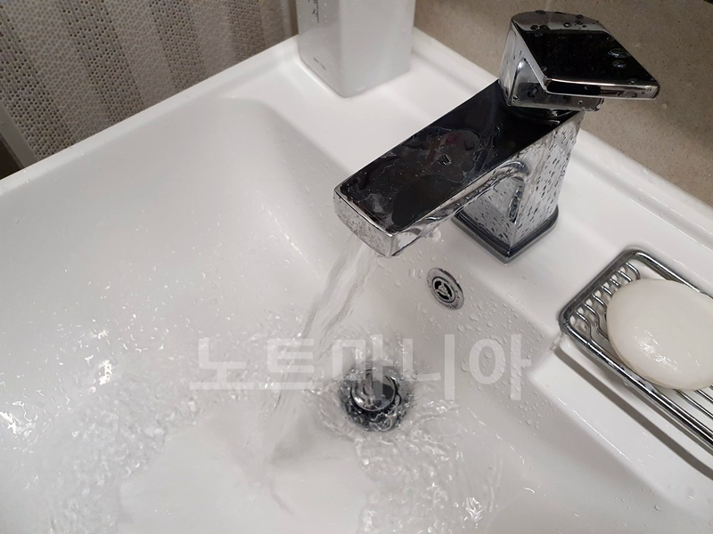 이제 냉수와 온수를 각각 3분정도 배출 시켜 준다. 왜냐하면 기존 수도관에 남아있는 녹과 이물질을 제거해주는 작업이 필요하기 때문이다. 만약 이런 이물질을 제거하지 않고 필터를 장착하면 지속적으로 필터에 걸린 이물질로 인해 물의 흐름이 방해 받게 될 것이다.