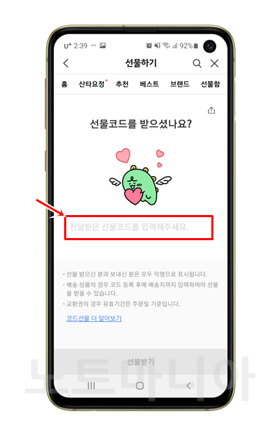 카카오톡 선물코드 등록 방법