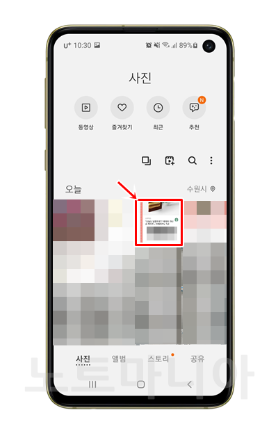 저는 갤러리로 이동해서 진행을 해보았는데요. 이렇게 갤러리에서 저장된 기프티콘을 선택해주세요.
