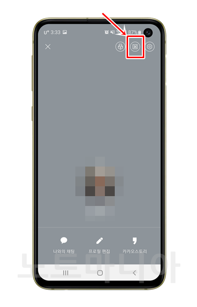 우선 카톡을 실행시켜주세요. 그리고 자신의 프로필로 들어가주세요. 그리고 위쪽에 보시면 네모난 아이콘이 있습니다. QR코드 만드는 아이콘인데요. 이걸 눌러주세요.