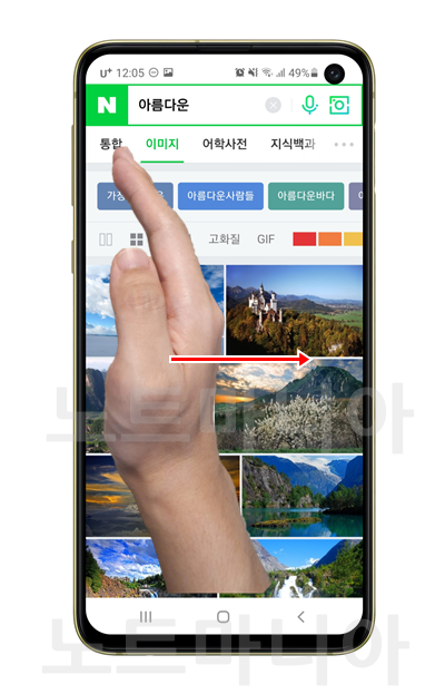 엄밀히 말하면 화면 터치가 아니라 스와이핑이다. 화면을 문지르는 방법인데, 손날로 화면을 슥하고 닦아주면 된다. 이때, 새끼손가락은 닿지 않게 하고 손날의 살이 두툼한 부분으로만 닦아줘도 갤럭시 스크린샷이 잘 된다.