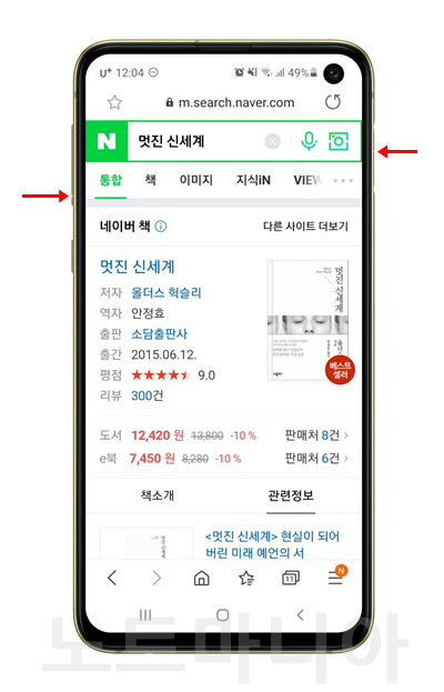 물리키로 캡쳐하는 방법은 간단하다. 아래와 같이 전원 버튼과 볼륨다운 버튼을 동시에 누르면 된다.