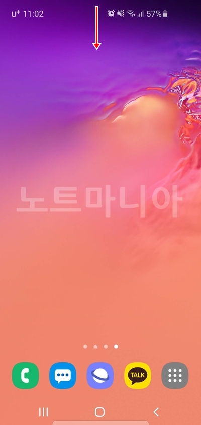 갤럭시 상단바를 두번 내려서 확장 메뉴가 나오도록 한다. 왠만한 설정은 이곳에서 모두 가능하다.