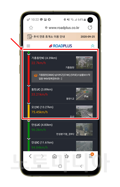 로드플러스로 경부고속도로 교통상황 조회하는 법