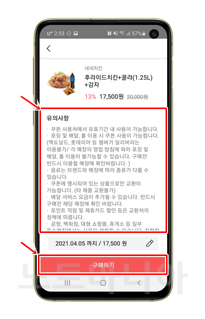 유의사항을 잘 읽어주세요. 주의할 점은 치킨 메뉴 같은 경우, 메뉴 변경이 안될 가능성이 높습니다. 카페 쿠폰들은 메뉴와 상관없이 금액만 맞으면 아무 음료나 주문할 수 있는것과는 대조적이죠? 그리고 환불이 안되니까 신중하게 구매를 하시기 바랍니다. 이점 참고하세요.