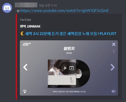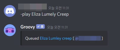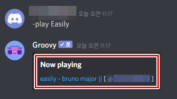 노래가 재생되는 동안 동일한 명령어로 노래를 넣으면 현재 플레이 리스트에 노래가 추가된다. 또한 가수 이름과 노래 제목을 같이 넣으면 더 정확히 들어간다.