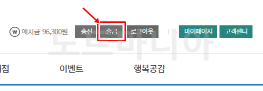 예치금을 출금하고 싶으면, 충전 때와 거의 비슷한다. 동행복권 홈페이지에서 출금을 누른다.