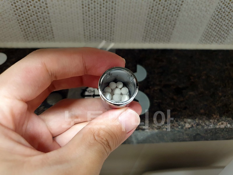 하얀색 세디 필터는 미세 플라스틱 조각 및 미세한 입자의 이물질을 걸러준다. 끝으로 염소제거볼 캡슐과 항균볼을 거치면서 염소와 물 비린내가 제거 된다. 또한 세면대에 고여있는 물을 정화하고 세균번식을 억제하는 역할을 한다.