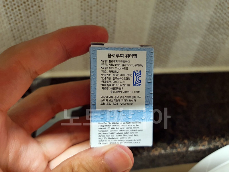 지름 24mm, 길이 35mm, 무게 20g이다. 재질은 ABS와 크롬도금 되어있다. ABS는 합성수지의 일종으로 단단하고 매끈한 플라스틱이라고 생각하면 된다. 조금 더 자세히 알고 싶은 사람이라면 이 글을 보면 더 자세히 알 수 있다. 한국상하수도협회의 KC인증을 받은 제품이니 특별히 문제는 없을 것이다.