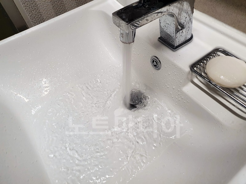 이제 냉수와 온수를 각각 3분정도 배출 시켜 준다. 왜냐하면 기존 수도관에 남아있는 녹과 이물질을 제거해주는 작업이 필요하기 때문이다. 만약 이런 이물질을 제거하지 않고 필터를 장착하면 지속적으로 필터에 걸린 이물질로 인해 물의 흐름이 방해 받게 될 것이다.