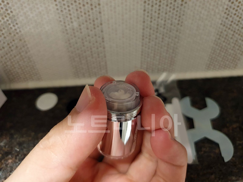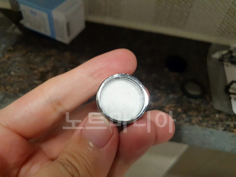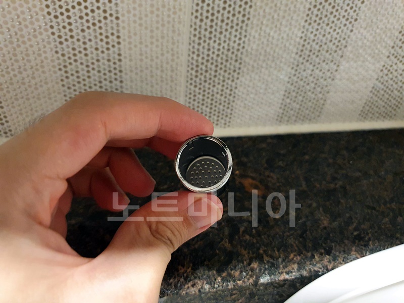 끝으로 스테인레스 필터를 끼워준다. (손톱이 왜이리 길지?)