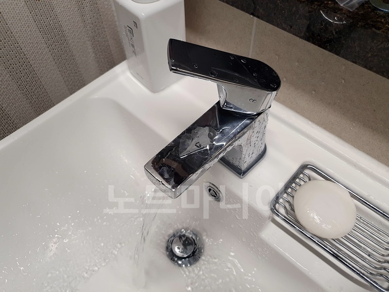 물이 아주 잘~ 나온다. 그런데 문제가 있다. 수압이 너무 쌔서 물이 다 사방으로 튄다.