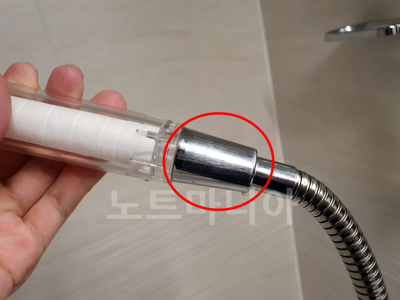 필터의 교체 주기는 2~3개월로 샤워기 넥에 들어있는 하얀 필터가 갈색으로 변하면 더이상 필터의 역할을 못해주기 때문에 새것으로 바꿔줘야 한다. 이때는 필터만 리필해서 교체할 수 있다.