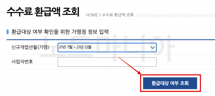 2. 신규 개업 년월을 입력하고 자신의 사업자 번호를 입력한 뒤에 [환급대상 여부 조회] 버튼을 클릭합니다.