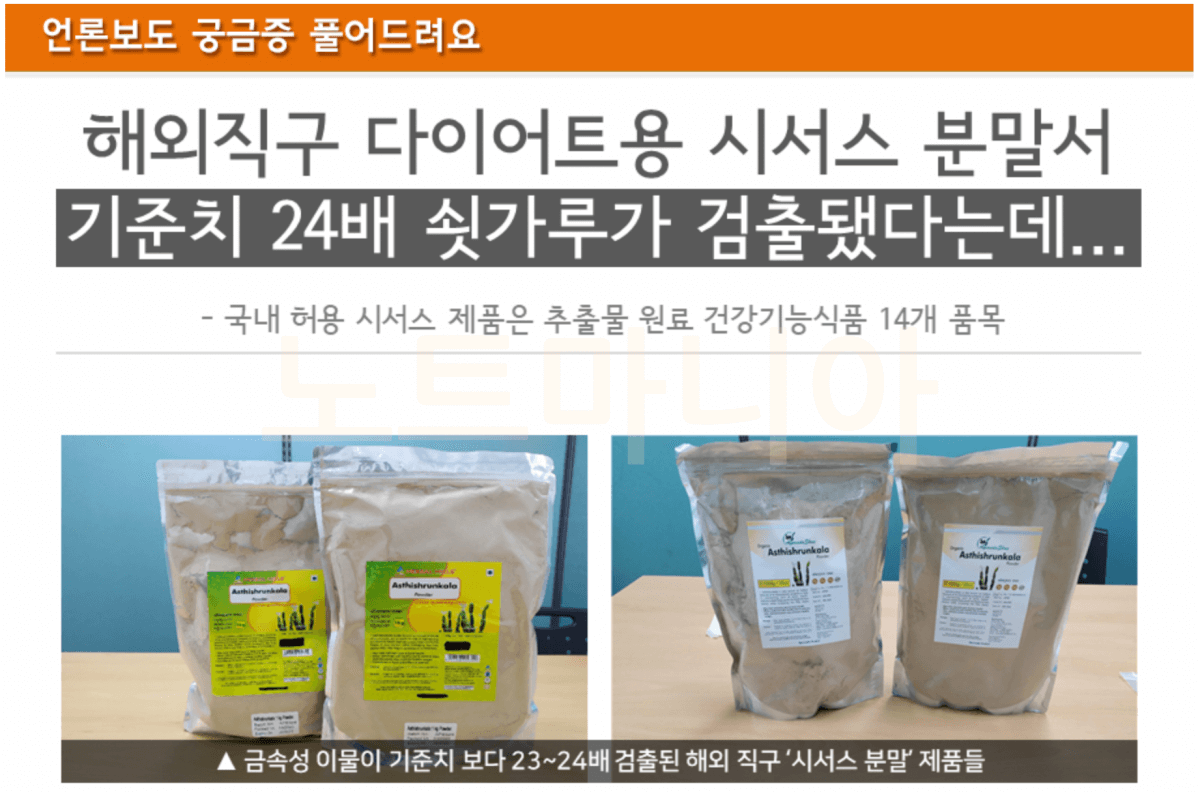 시서스 분말에서 쇳가루 검출 보도내용