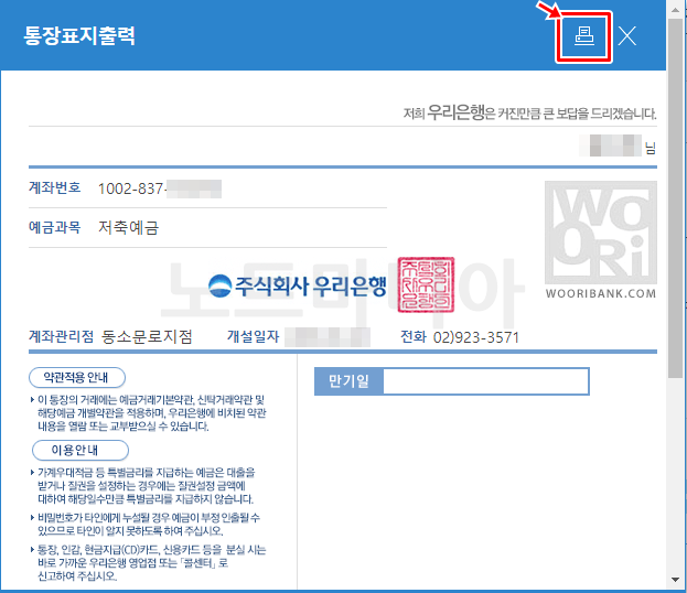 우리은행 통장 사본 출력하는 법