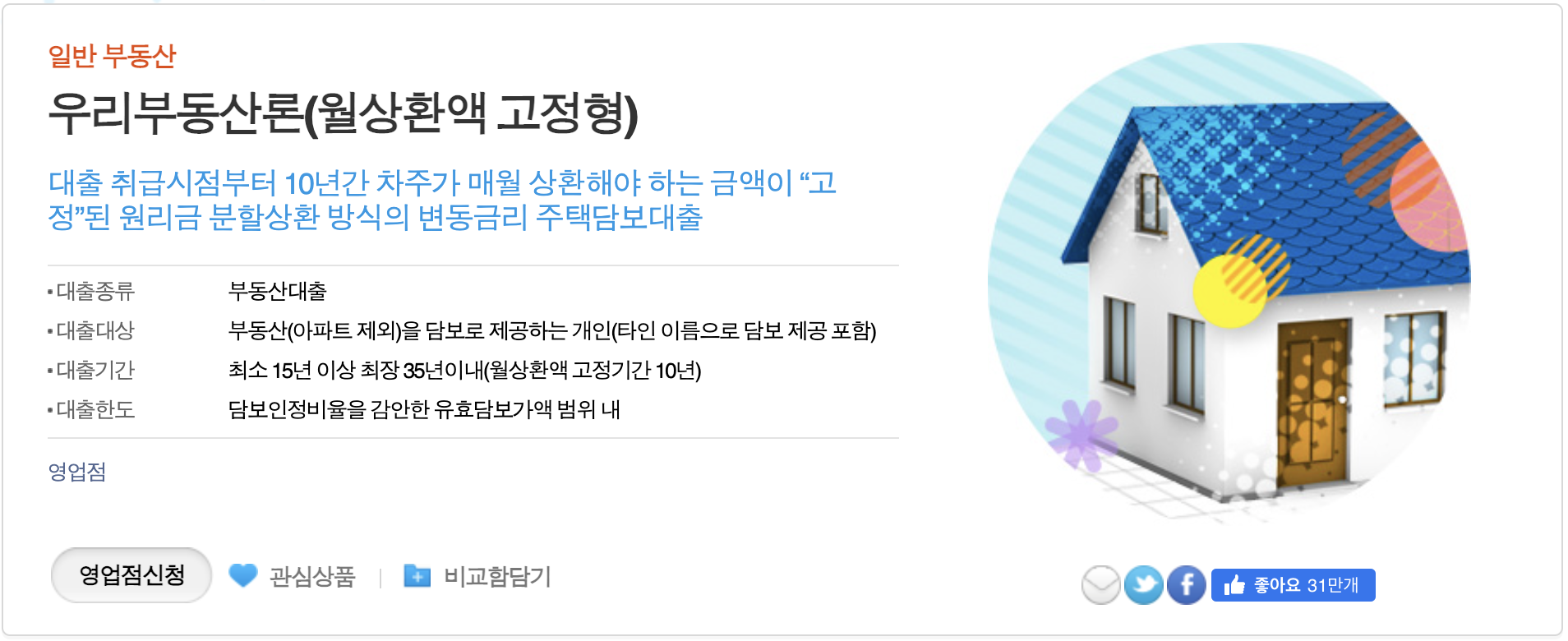 - 대출기간:조건부 최대 35년(주택담보물건&원리금균등분할상환)