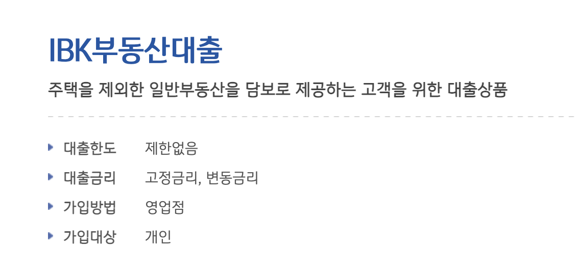 - 대출자격: 주택을 제외한 일반 부동산을 담보로 제공하는 고객