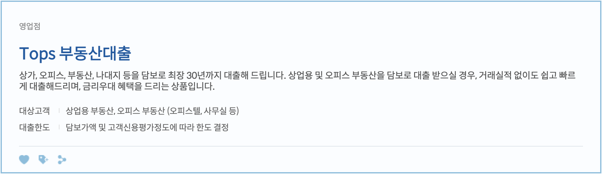 - 대출자격: 일반부동산(상가, 오피스텔, 나대지 등)을 담보로 대출 신청하는 고객