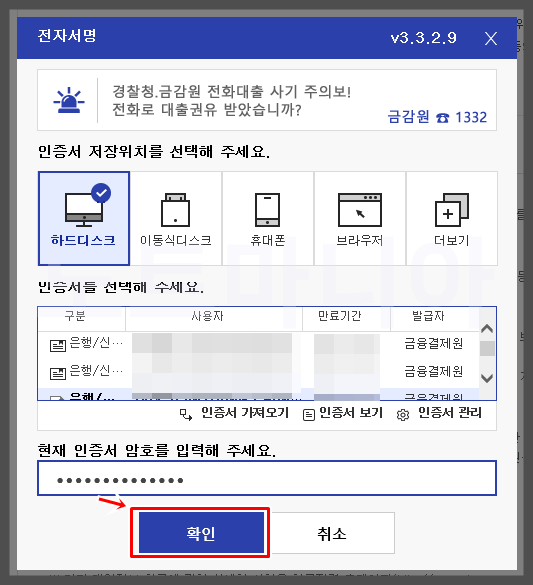 이제 거의 다 됐습니다. 이제 보안인증서로 인증을 한번 해주면 신청이 완료됩니다.