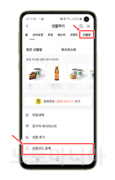 카카오톡 스타벅스 기프티콘 등록하기