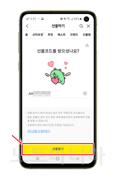 카카오톡 선물코드 등록 방법