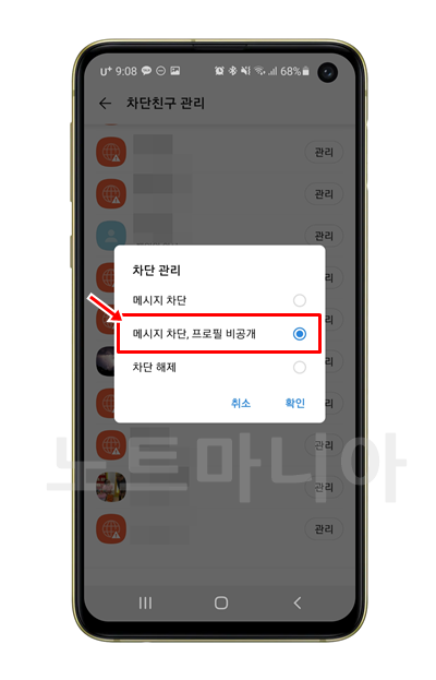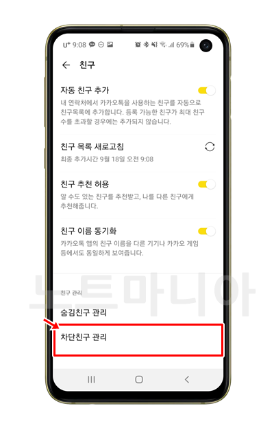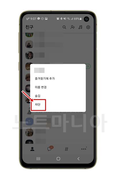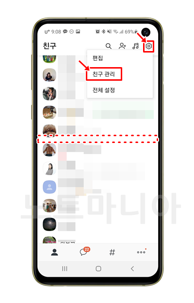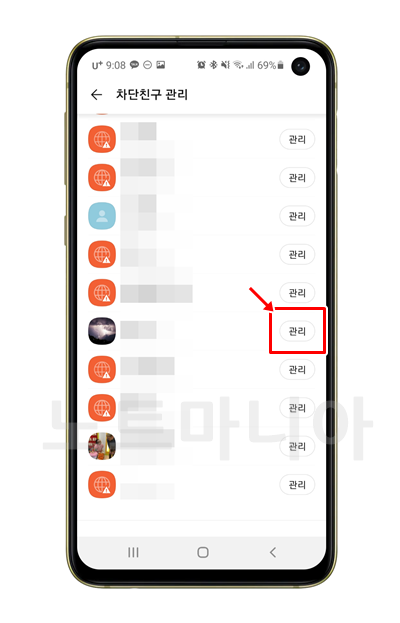그다음 아래쪽을 보면 차단친구 관리라는 항목이 보인다. 눌러서 들어간다.