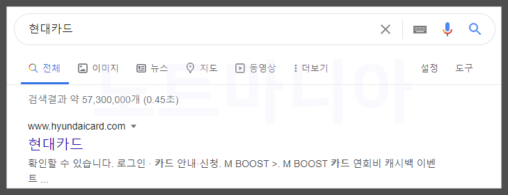 구글이나 네이버, 다음등에서 검색후 현대카드 홈페이지로 이동해주세요. '현대카드'로 검색하시면 됩니다.