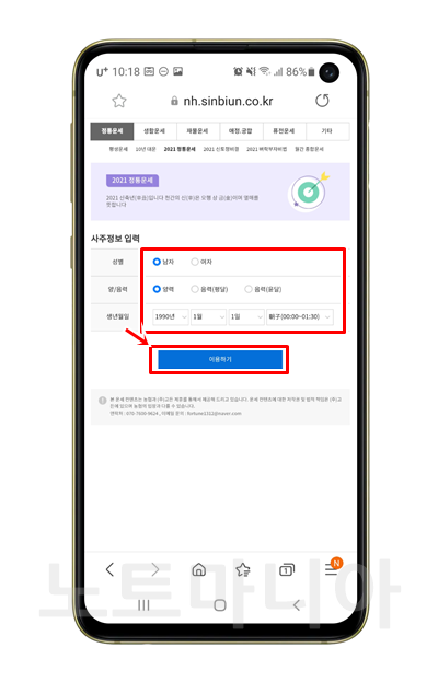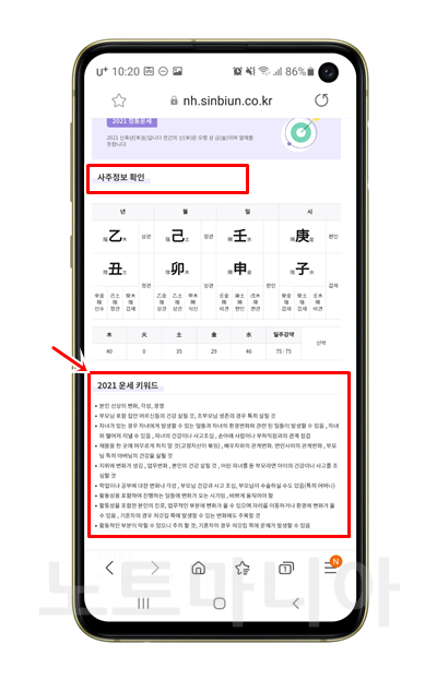 제가 이용하는 곳은 바로 농협에서 제공하는 사주인 무료신년운세입니다. 데스크탑에서 조회하는 것도 가능하지만, 편리하게 스마트폰으로 조회하는 방법으로 알려드리도록 하겠습니다.