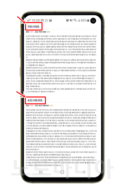 무료 신년운세의 적중률이 상당히 높았습니다. 저는 올해 1월에 저의 신년운세를 조회했었습니다. 올해가 끝나가는 시점에 작년 신년운세 결과를 들여다보니 소름이 끼쳤습니다. 왜냐하면 너무 정확하게 맞춘 부분이 많았기 때문입니다.