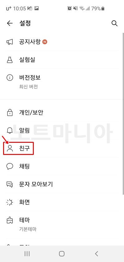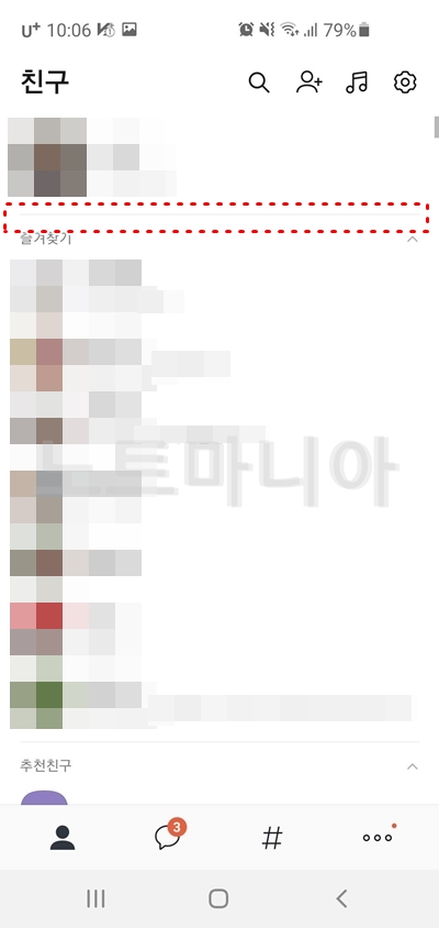카톡 친구 생일 알림을 보기 싫을 수도 있다. 그러지 말자. 그런데 그런 경우가 각자 있을 수 있다. 그럴 때에는 아래와 같이 [...] 설정으로 들어간 다음, 톱니바퀴 설정을 누르고 친구를 눌러서 들어간다.