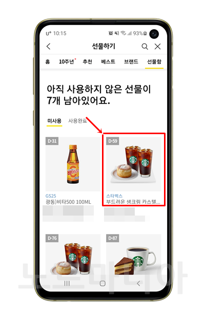 그러면 아래와같이 기프티콘으로 받은 선물 내역이 있습니다. 이 중에서, 한번 연장했던 기프티콘을 눌러서 들어갑니다.